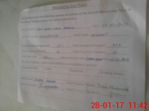 | Attendance Register | Head Teacher | MEA with School | Visit Proof |