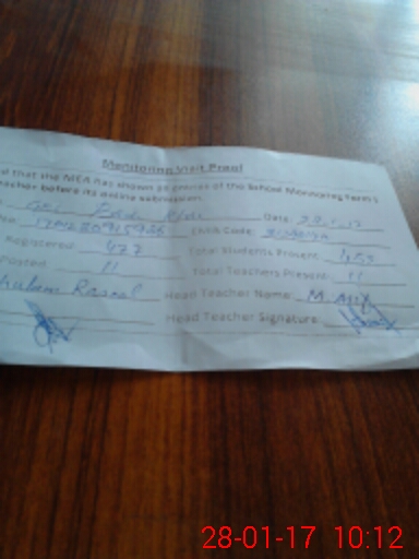 | Attendance Register | Head Teacher | MEA with School | Visit Proof |