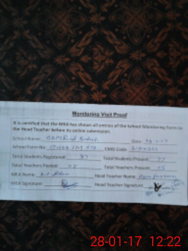 | Attendance Register | Head Teacher | MEA with School | Visit Proof |