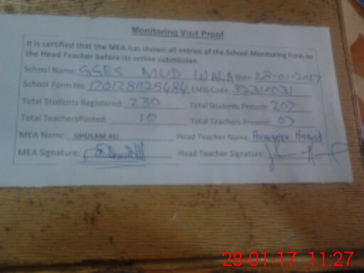 | EMIS Code: 32310031 | Name of School: GGES MUD WALA | |||
