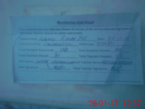 | Certified that this School was Inspected by the Undersigned MEA/DMO Today and the Information Stated Above is as Per Record. | |||||