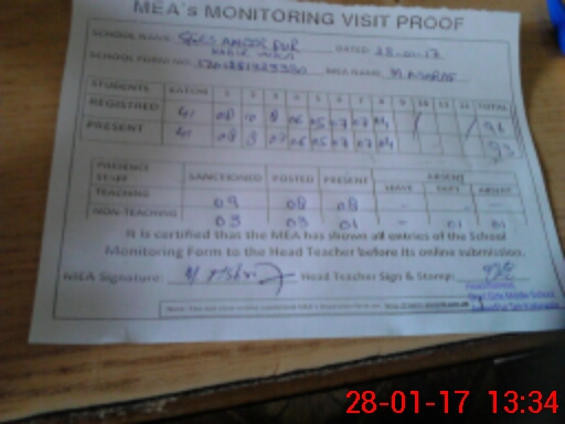 | Attendance Register | Head Teacher | MEA with School | Visit Proof |