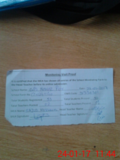 | Attendance Register | Head Teacher | MEA with School | Visit Proof |