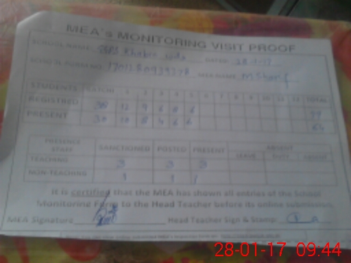 | Certified that this School was Inspected by the Undersigned MEA/DMO Today and the Information Stated Above is as Per Record. | |||||