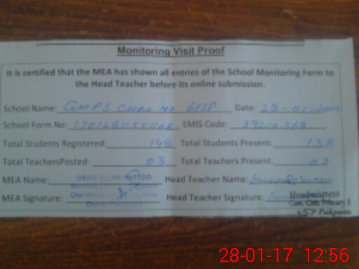 | Attendance Register | Head Teacher | MEA with School | Visit Proof |