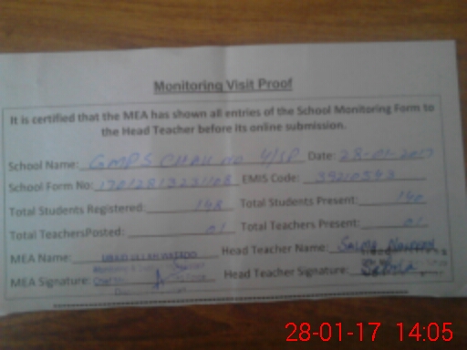 | EMIS Code: 39210543 | Name of School: GMPS CHAK NO. 4/SP | |||