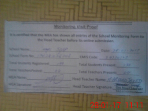 | Certified that this School was Inspected by the Undersigned MEA/DMO Today and the Information Stated Above is as Per Record. | |||||