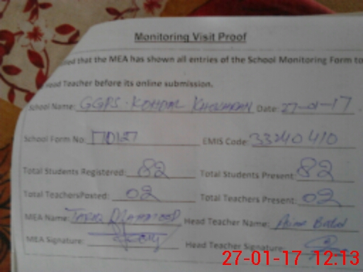 | Attendance Register | Head Teacher | MEA with School | Visit Proof |