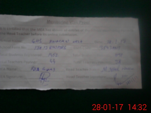 | Certified that this School was Inspected by the Undersigned MEA/DMO Today and the Information Stated Above is as Per Record. | |||||