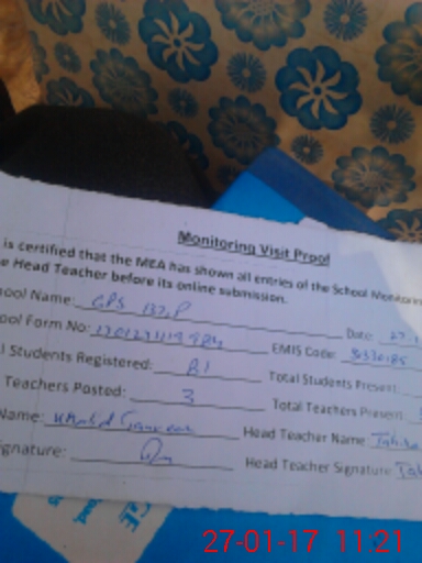 | Name: JA**** AL**** Designation: (School Headmaster's/Headmistress's) E S E Phone/Cell Number: 03**** |