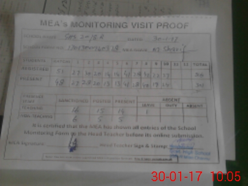 | Attendance Register | Head Teacher | MEA with School | Visit Proof |