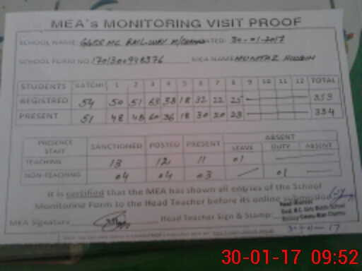 | Attendance Register | Head Teacher | MEA with School | Visit Proof |