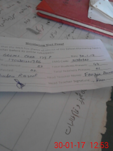 | Attendance Register | Head Teacher | MEA with School | Visit Proof |