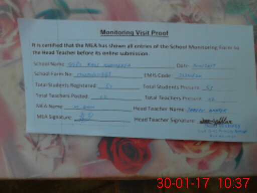 | Attendance Register | Head Teacher | MEA with School | Visit Proof |