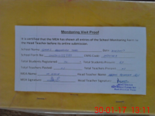| Attendance Register | Head Teacher | MEA with School | Visit Proof |
