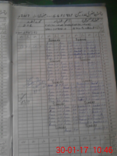 | CNIC | Full Name | Designation | R/C | Absence During Last Calender Month |