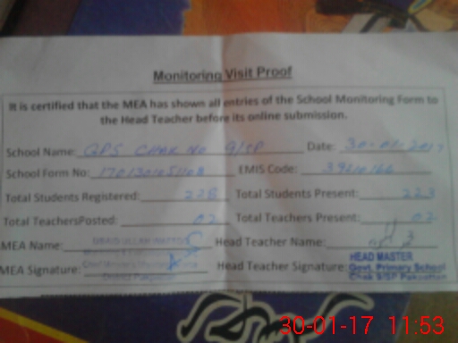 | EMIS Code: 39210166 | Name of School: GPS 9 SP | |||