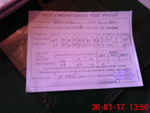 | Attendance Register | Head Teacher | MEA with School | Visit Proof |