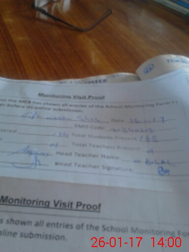 | Attendance Register | Head Teacher | MEA with School | Visit Proof |