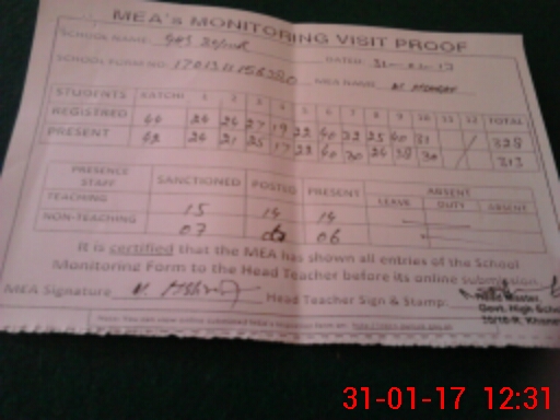 | Attendance Register | Head Teacher | MEA with School | Visit Proof |