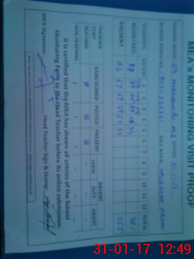 | Certified that this School was Inspected by the Undersigned MEA/DMO Today and the Information Stated Above is as Per Record. | |||||