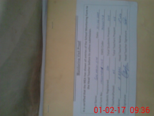 | Attendance Register | Head Teacher | MEA with School | Visit Proof |