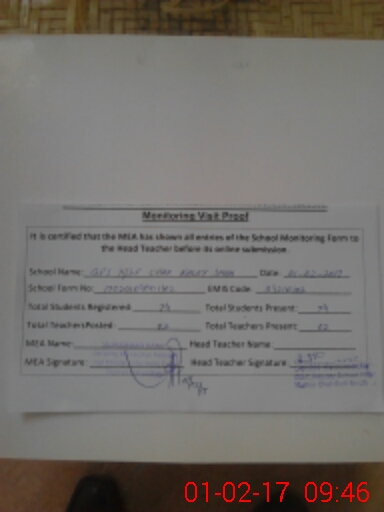 | Certified that this School was Inspected by the Undersigned MEA/DMO Today and the Information Stated Above is as Per Record. | |||||