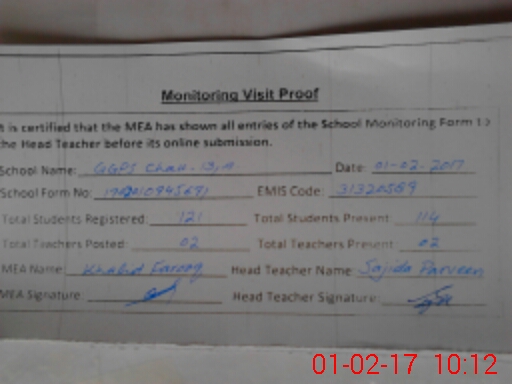 | EMIS Code: 31320589 | Name of School: GGPS CHAK NO.13/A | |||