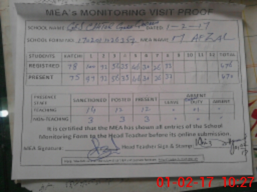 | Attendance Register | Head Teacher | MEA with School | Visit Proof |