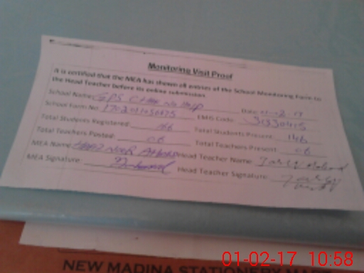 | Attendance Register | Head Teacher | MEA with School | Visit Proof |