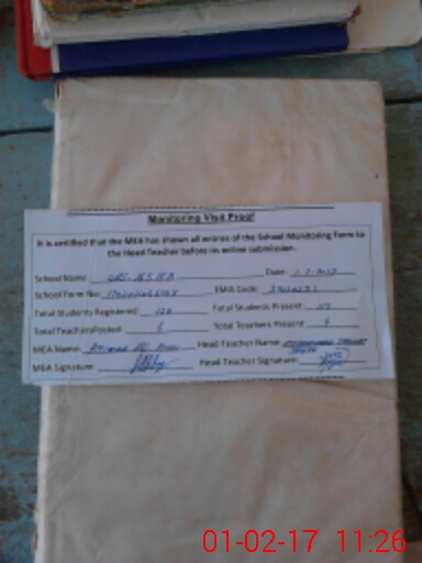 | Attendance Register | Head Teacher | MEA with School | Visit Proof |