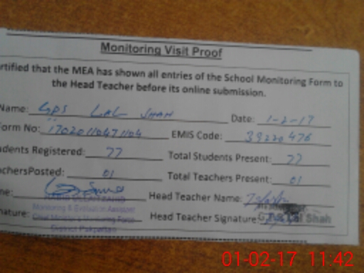 | EMIS Code: 39220476 | Name of School: GPS LAL SHAH | |||