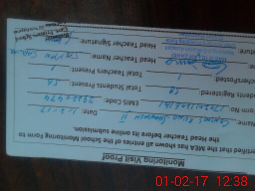 | Attendance Register | Head Teacher | MEA with School | Visit Proof |