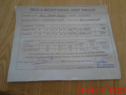 | Attendance Register | Head Teacher | MEA with School | Visit Proof |