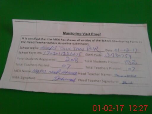 | EMIS Code: 31330754 | Name of School: GMPS SULTAN PUR | |||