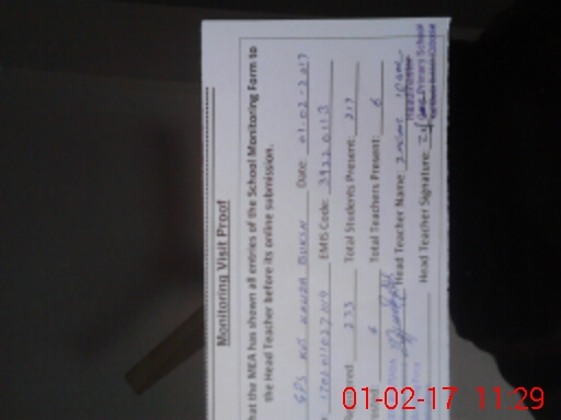 | Attendance Register | Head Teacher | MEA with School | Visit Proof |