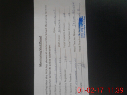 | Certified that this School was Inspected by the Undersigned MEA/DMO Today and the Information Stated Above is as Per Record. | |||||