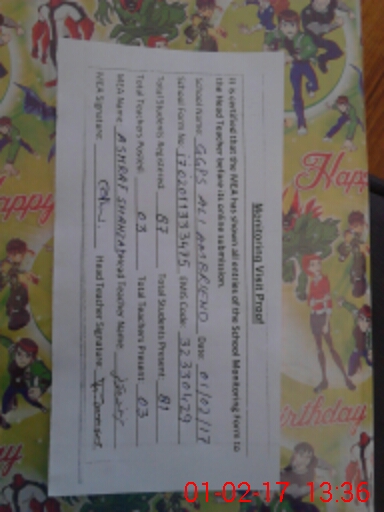 | Attendance Register | Head Teacher | MEA with School | Visit Proof |