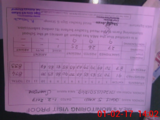 | Attendance Register | Head Teacher | MEA with School | Visit Proof |