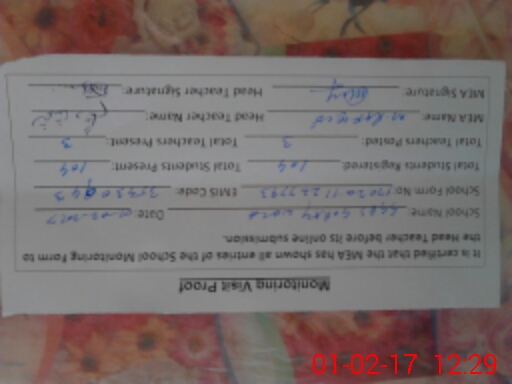 | Attendance Register | Head Teacher | MEA with School | Visit Proof |