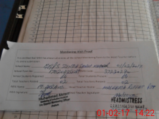| Attendance Register | Head Teacher | MEA with School | Visit Proof |