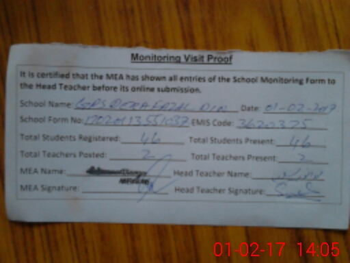 | EMIS Code: 35620375 | Name of School: GPS DERA FAZAL DIN | |||