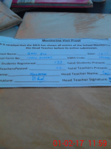 | Attendance Register | Head Teacher | MEA with School | Visit Proof |