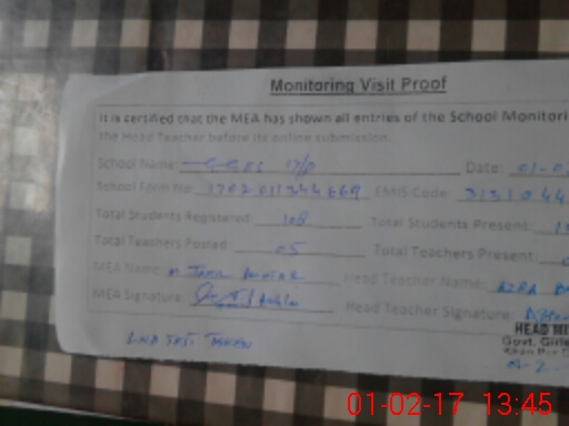 | Certified that this School was Inspected by the Undersigned MEA/DMO Today and the Information Stated Above is as Per Record. | |||||