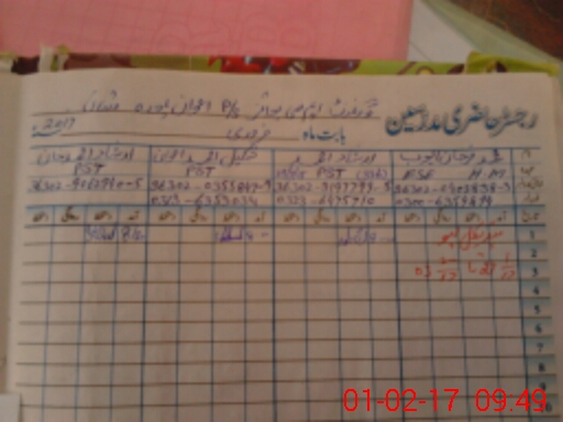 | Name: Hi**** Ul**** Designation: (School Headmaster's/Headmistress's) PST/PTC/JV Phone/Cell Number: 03**** |