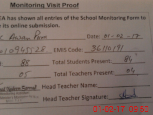 | EMIS Code: 36110191 | Name of School: GPS MC AWAN PURA | |||