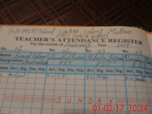 | EMIS Code: 36110373 | Name of School: GGPS MC WRITERS COLONY MULTAN | |||