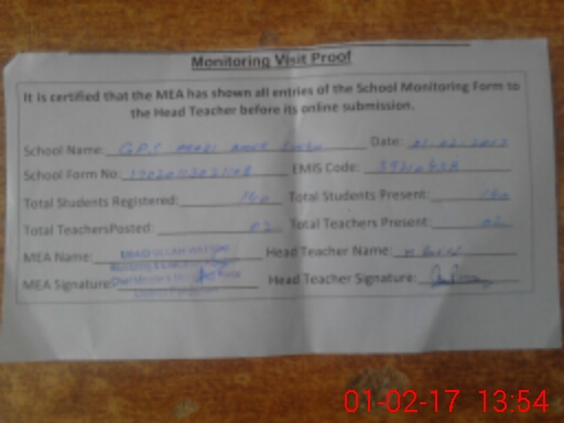 | Certified that this School was Inspected by the Undersigned MEA/DMO Today and the Information Stated Above is as Per Record. | |||||