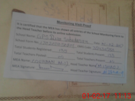 | EMIS Code: 35430550 | Name of School: GPS DERA SUBIDARAN | |||