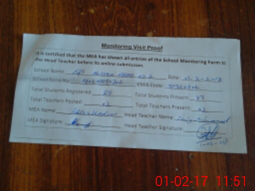 | Attendance Register | Head Teacher | MEA with School | Visit Proof |